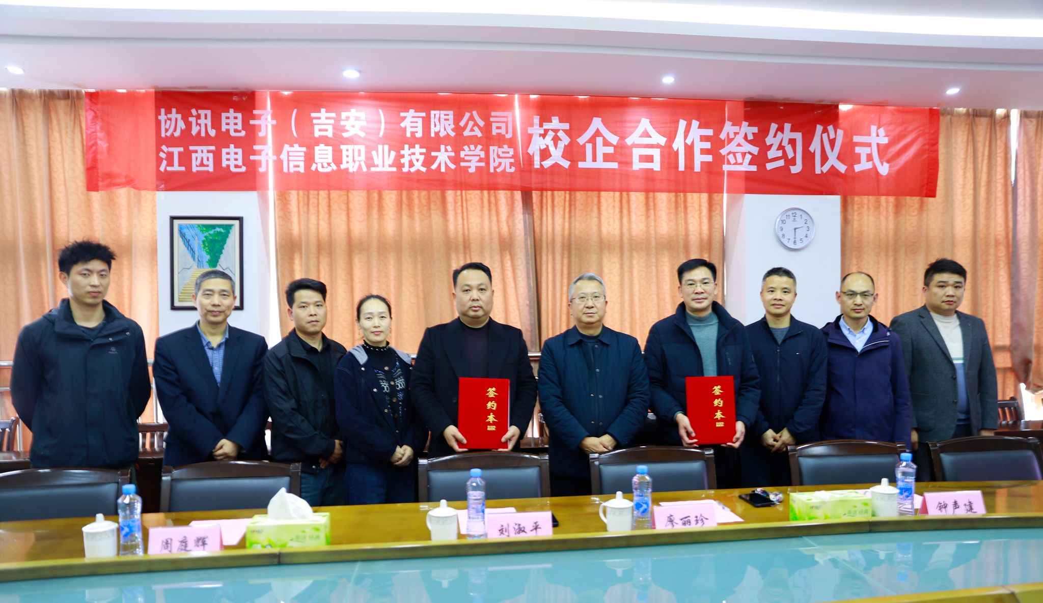 3月25日,我校与协讯电子(吉安)有限公司举行校企合作签约仪式。协讯电子(吉安)有限公司人资行政总监刘淑平,人事经理廖丽珍,高级工程师周庭辉,培训中心主管钟声建,校党委书记肖红秋,党委委员、副校长钟端玮,以及相关部门负责人共同出席仪式。