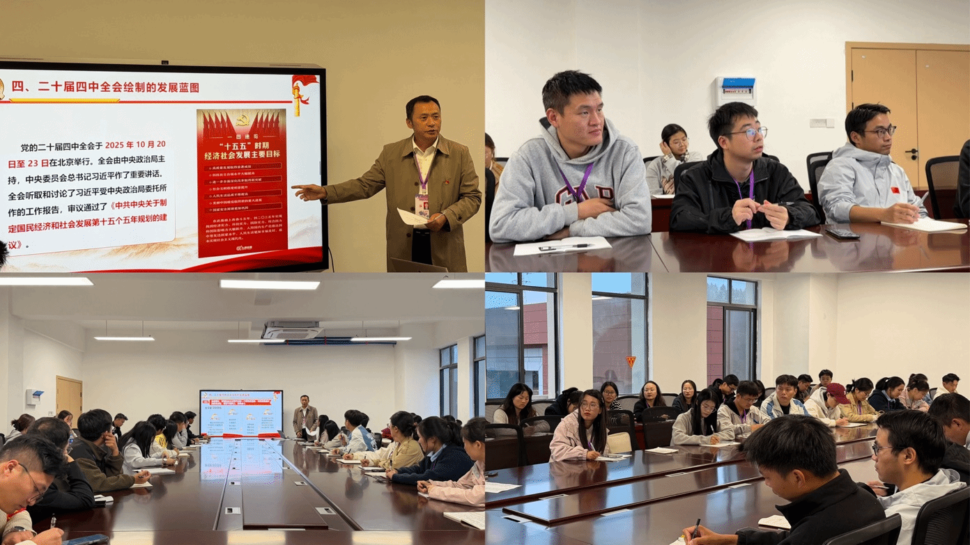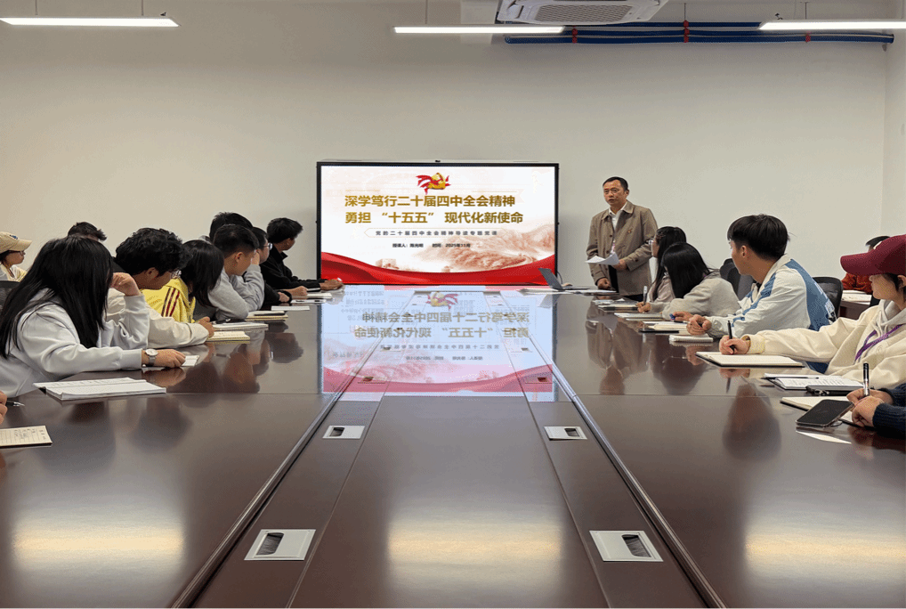 为深入学习宣传贯彻党的二十届四中全会精神,引导全体教师准确把握全会的核心要义与战略部署,11月10日,学校万年产业学院召开全体教师会议,学校党支部负责人作专题党课辅导。